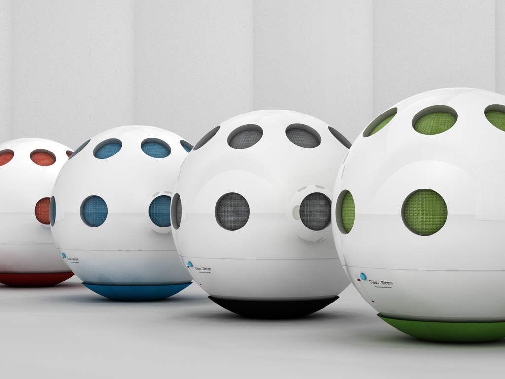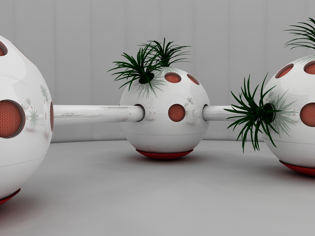 Diseño de un purificador de aire para Clean Biotec. Inspirado en la forma del ozono, funciona mediante la mezcla de unas bacterias, agua y plantas. El aire pasa por las bacterias previamente humedecidas y finalmente por las plantas. Diseño de una familia de objetos,